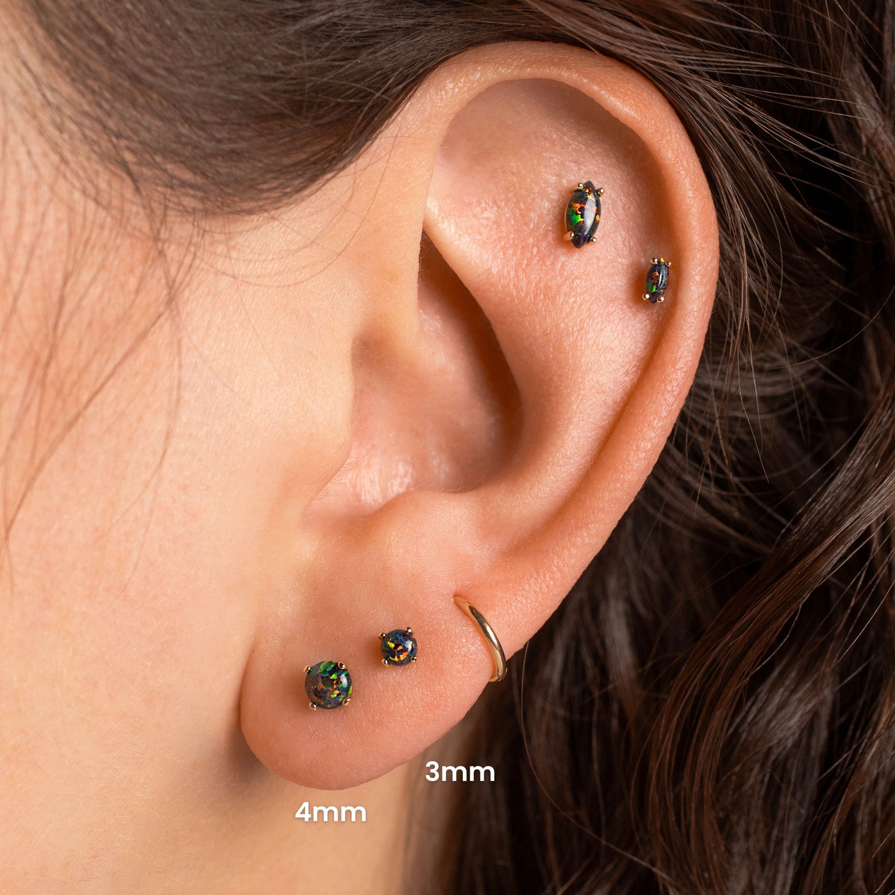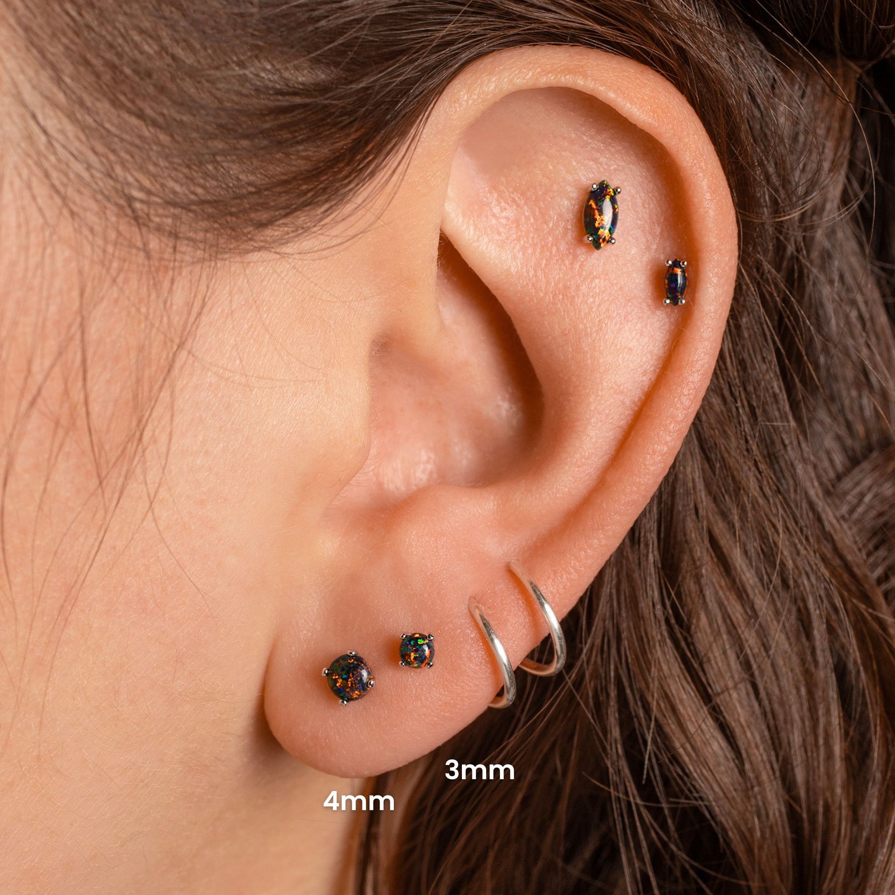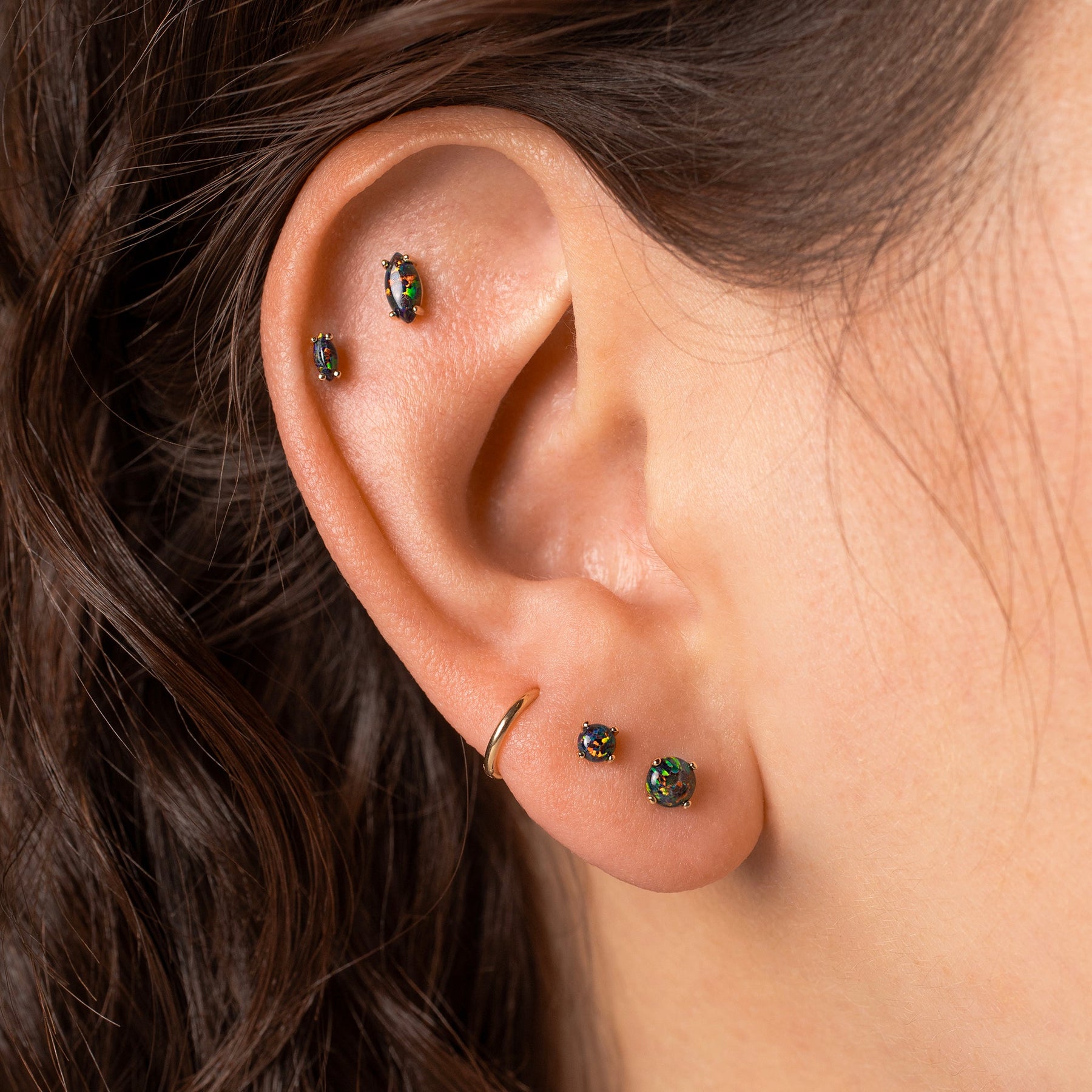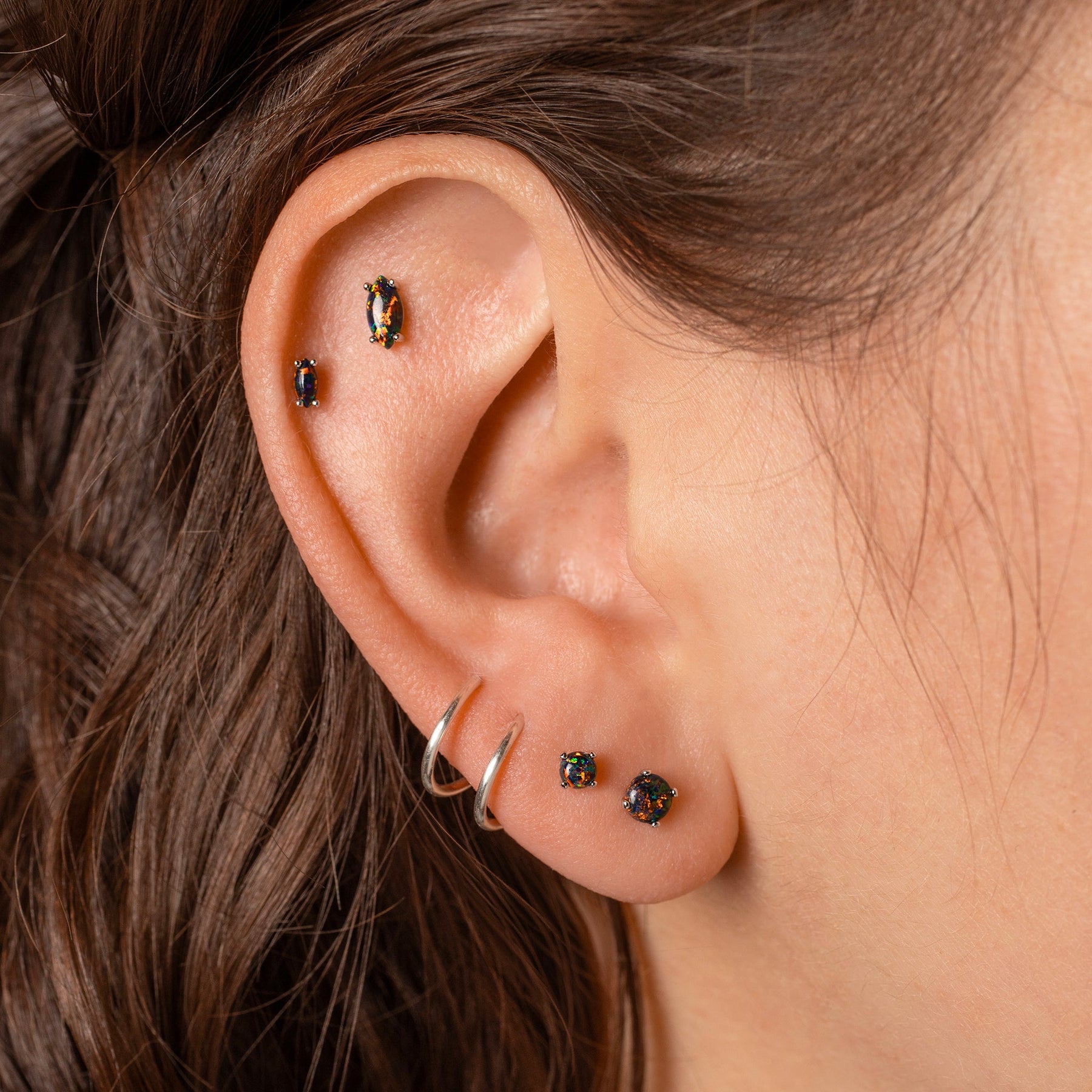 Bonus: they work in both lobe and cartilage piercings. And, like everything at Grayling, our flat-back sleeper earrings are entirely hypoallergenic and 100% nickel free. So, say goodbye to irritated skin and hello to these black opal earrings. They're the ultimate addition to your ear stack!
